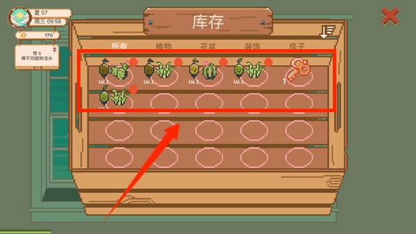 1、选择初始植物,学习基础养护方法,完成引导教程。