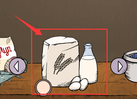 2、购买完材料之后回到家中,来到厨房,点击右边的柜子,找到材料。