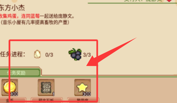 1、在奶牛镇的小时光游戏里,可以接到收集鸡蛋的任务。