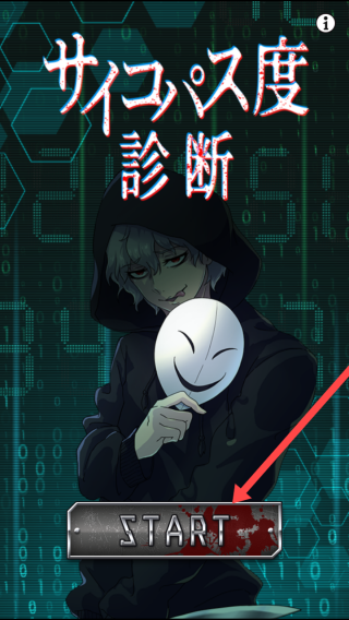 1、进入游戏界面后,点击【START】开启サイコパス度診断测试,这是开始游戏的关键操作。