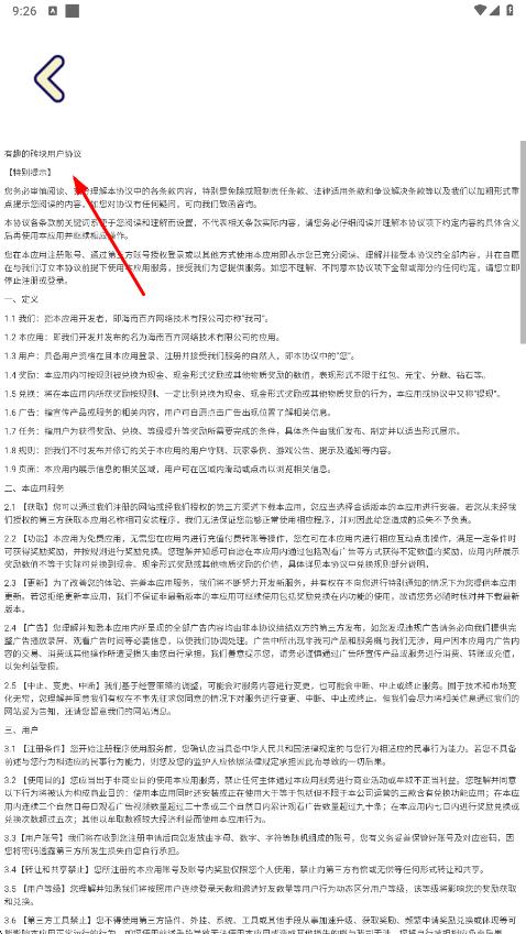 2、点击可以直接查看游戏的用户协议,并且玩家可以进行对文章的仔细阅读。