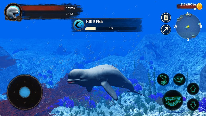 白鲸模拟器在蔚蓝海底开启自由遨游与成长的奇妙旅程,你可以操控白鲸穿越绚丽珊瑚礁群、幽深海底峡谷,邂逅形态各异的海洋生物,体验捕食、迁徙、躲避危险等真实生存场景随着探索深入,白鲸会通过获取能量不断成长,解锁新技能与外观,还能与其他海洋生物互动,感受海底生态的神秘与壮阔。