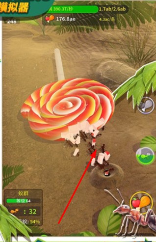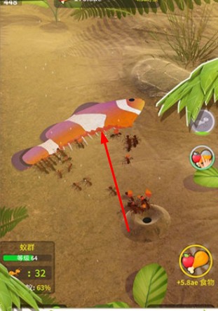 1、滑动屏幕切换地面与地下场景,点击蚁群指派采集任务,在草丛、树洞等区域收集食物与建筑材料。