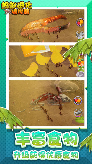 2、分工协作机制:还原真实蚂蚁社会分工,工蚁负责采集建造,兵蚁负责保卫领地,蚁后负责繁殖壮大族群规模。