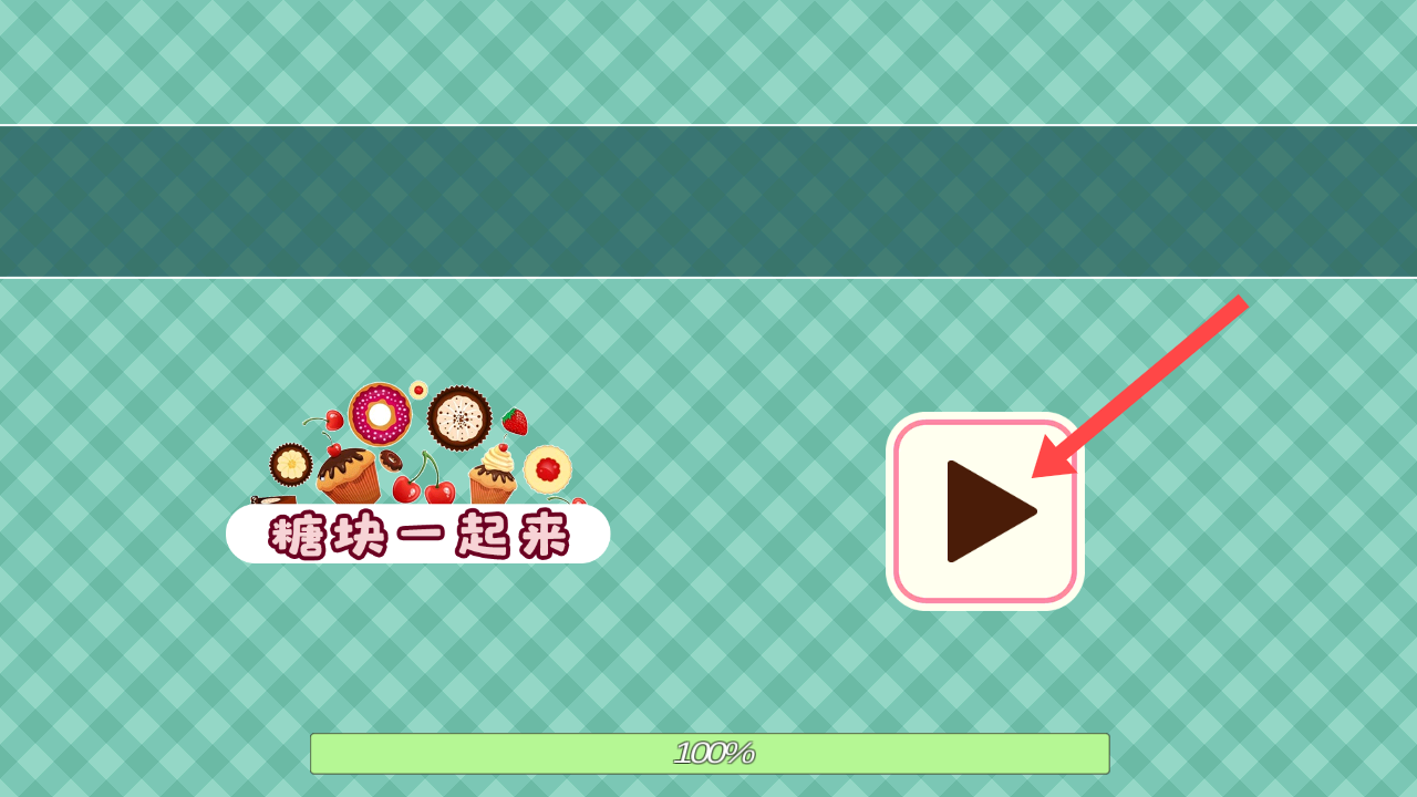 1、进入游戏界面后,你需要等待会进度条,然后点击右侧的播放按钮,正式开启糖块一起来的游戏之旅。