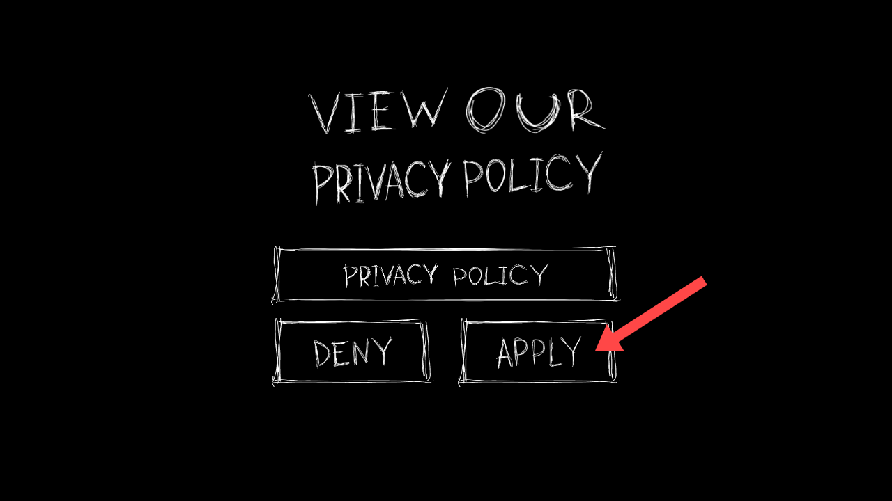 1、进入游戏前,会出现隐私政策界面,点击【APPLY】按钮,同意相关政策并进入游戏下一步。