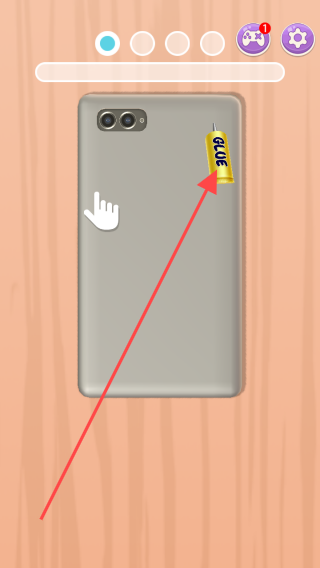 2、在手机装饰过程中,根据提示操作,如用【GLUE】胶水粘贴物品,按照要求完成手机初步装饰步骤。