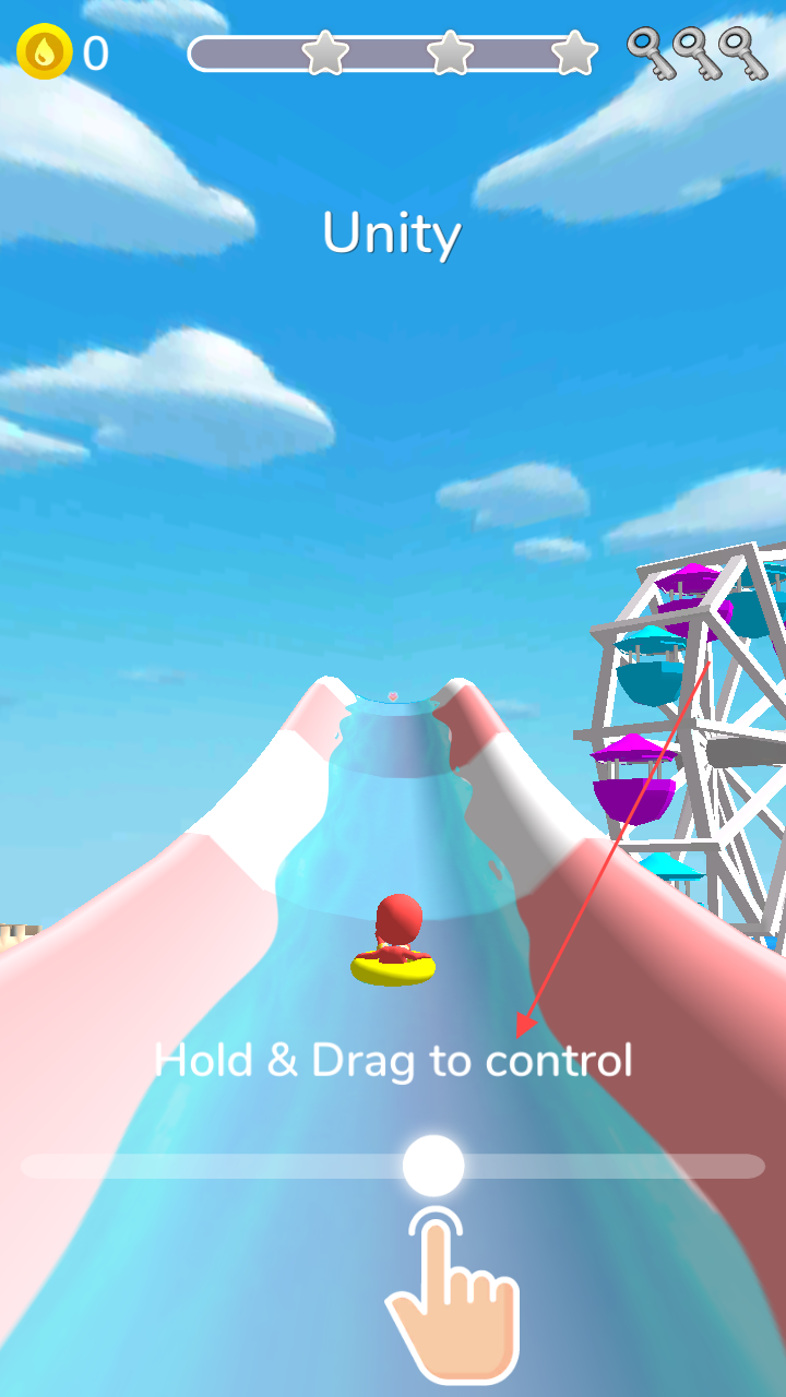 1、进入游戏,按照提示【HoldDragtocontrol】操作,按住并拖动来控制角色在滑道上的移动,这是操控角色的关键方式,确保顺利在滑道上前进。