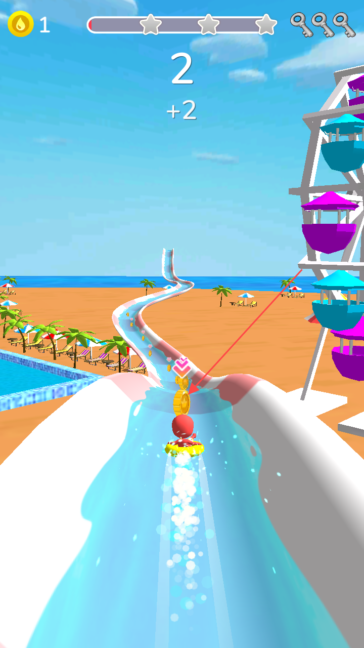 1、多人实时竞速对决:支持多人同屏参与水上滑梯比赛,玩家需在蜿蜒赛道中加速冲刺,躲避随机陷阱并超越对手,首个冲线即可赢取丰厚奖励,紧张刺激的竞技氛围点燃夏日激情。