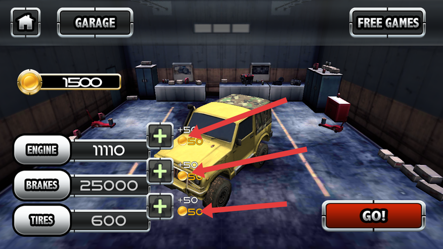 2、初始资金仅有1500,可以升级引擎,刹车系统和轮胎,首选引擎提升速度。