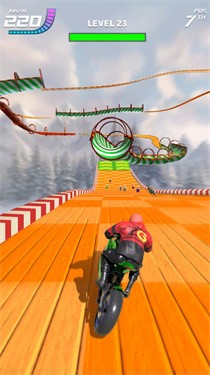 极限机车手竞赛带你体验过山车般的极速狂飙,在陡峭悬崖和城市高楼间完成穿梭飞跃。游戏操作简单易上手,长按屏幕滑动即可实现变道和加速,每场竞赛都需要精准判断和躲避,稍有不慎就会翻车。改装系统让爱车性能随等级提升,氮气加速时轮胎摩擦地面的音效更是让人热血沸腾。