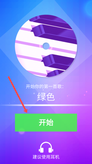 1、在游戏起始界面,看到提示“开始你的第一首歌:绿色”后,点击【开始】按钮,进入音乐游戏环节。