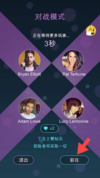 3、对战模式等待玩家界面,倒计时结束前点击【前往】按钮,进入对战游戏,与其他玩家竞技比拼。