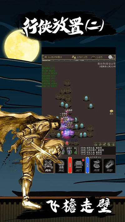 2、轻放置玩法:主打不肝轻放置模式,玩家在闲暇时即可操作,离线也能获得经验,真正实现轻松游戏,享受江湖冒险的惬意。