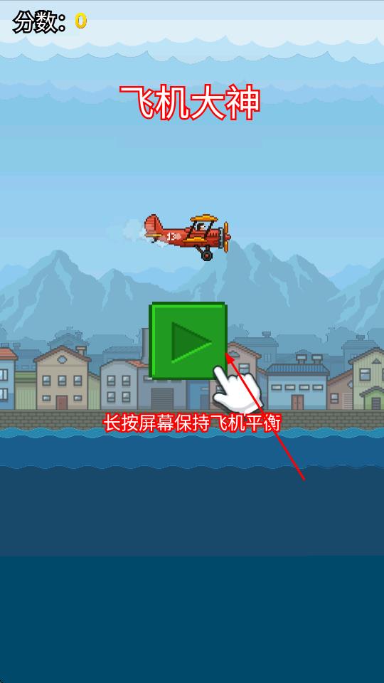 1、玩家长按屏幕控制红色飞机飞行,保持飞机平衡,使其在天空中稳定飞行。