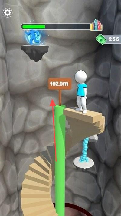 2、游戏中设有距离标识,玩家攀爬距离越远,可能获得越高分数,同时攀爬过程中还可收集金币。