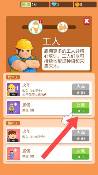 1、进入游戏界面,接手木材公司,在原木区域雇佣首批伐木工,点击操作开启砍伐作业,正式踏上经营木材生意的征程。