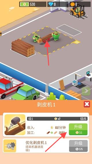 2、全产业链管理:涵盖伐木、运输、加工、销售全流程,可购买升级剥皮机、叉车、卡车等设备,建立高效铣削链,通过商业升级永久增加工厂收入。