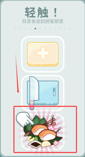 2、还有精彩的制作过程,点击屏幕开始切三文鱼。