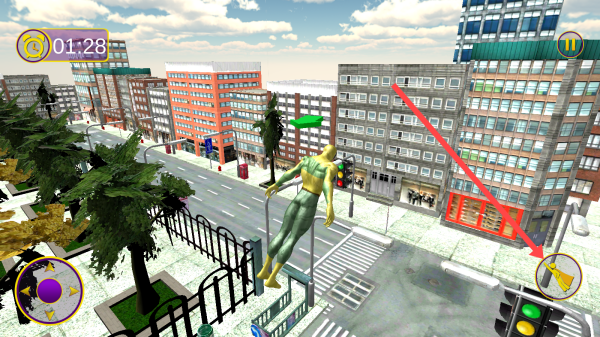 3、当蜘蛛侠需要快速移动或躲避敌人时,点击起飞按钮,让蜘蛛侠弹射飞起,在空中自由翱翔。