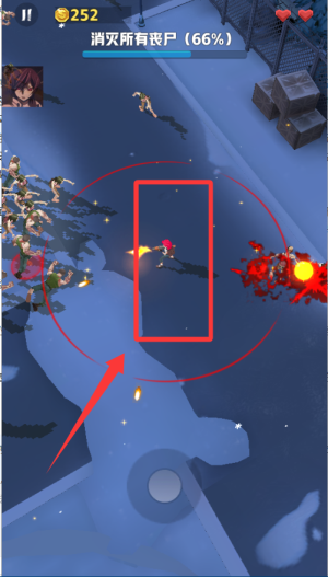 2、掌握走位技巧,以圆形路线移动吸引僵尸聚集,注意保留应急道具。
