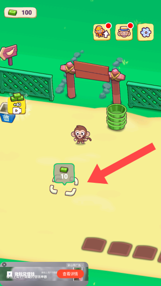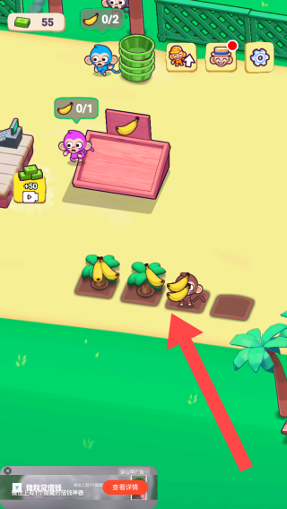 3、场景中还有其他猴子角色及功能按钮,玩家需操控猴子收集香蕉等资源,完成任务目标,推进游戏进程。