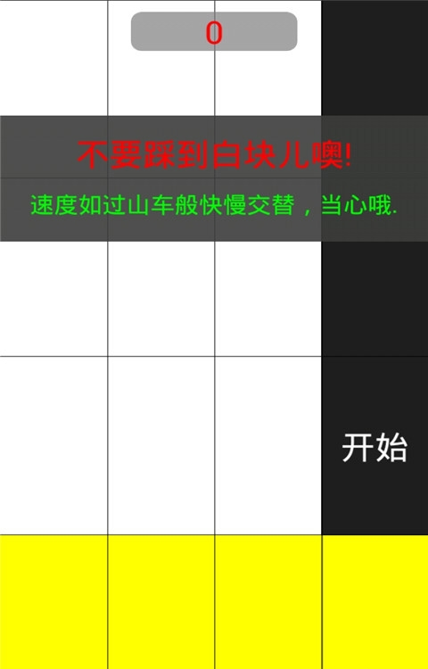 1、看到不要踩到白块儿提示,点击【开始】后,集中注意力,避开白块,适应速度变化。