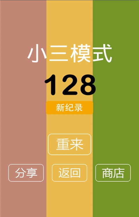 3、结算界面,可点击【重来】重新挑战,或通过【分享】展示成绩,也能去【商店】购买道具。