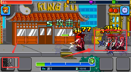 1、经典的像素美术风格,角色动作流畅自然。武术招式还原传统功夫的力与美,打击感十足。