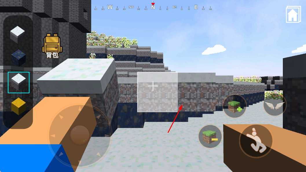 2、打开建造菜单挑选方块类型,长按拖拽至目标位置搭建围墙、屋顶,自由组合设计农场建筑外观与布局。