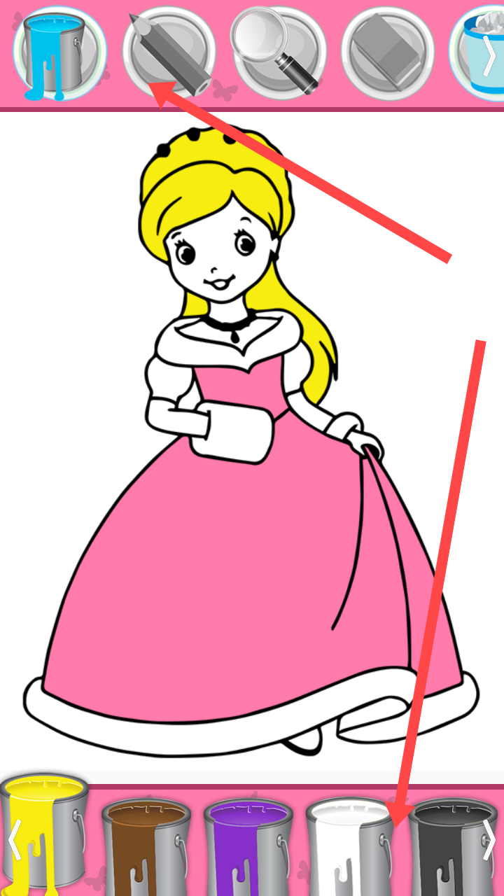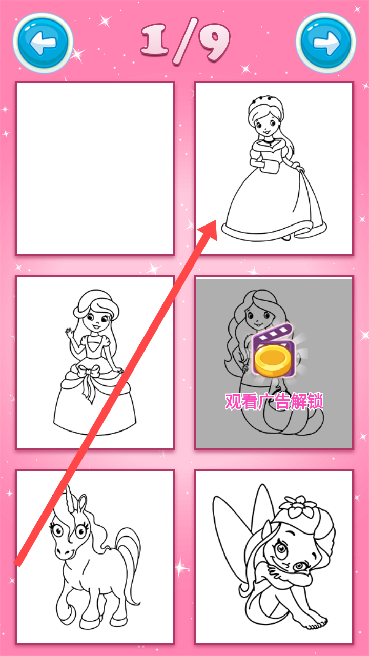 2、在图案选择界面,挑选感兴趣的图案,如公主形象,点击进入绘画操作界面。