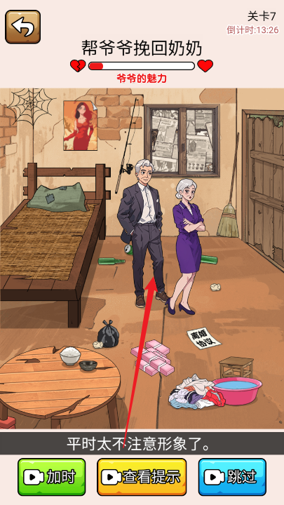 1、根据【帮爷爷挽回奶奶】任务要求,按照提示操作,可点击【查看提示】来辅助过关。