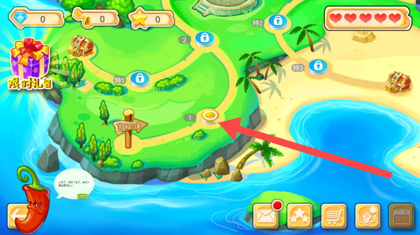 2、在关卡地图界面,选择初始关卡(如关卡1),点击进入具体关卡场景。