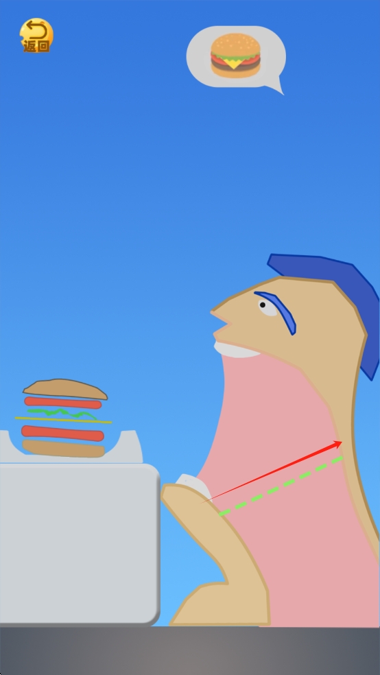 1、将汉堡一片一片的拖动到试吃员的嘴里,保证食物要在绿线之下。