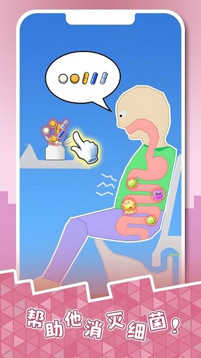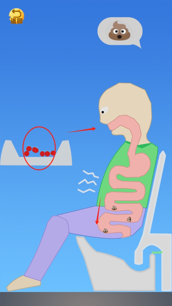 2、拖动红色珠子拖动到试吃员的肠道里,将试吃员卡在肠道里的便便挤到绿线之下。