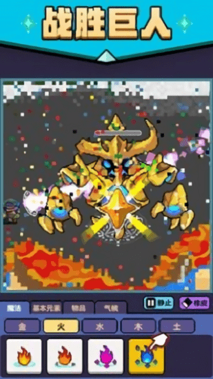 3、完成特定元素组合触发隐藏机制,如“水+雷”生成导电区域,“火+土”创造熔岩怪,解锁更多创意玩法。