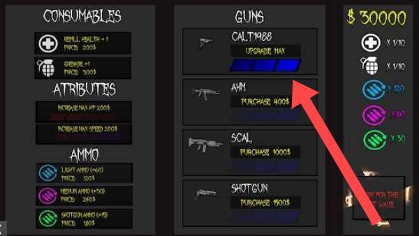 3、在战斗间隙,留意游玩界面,对武器进行升级,提升战斗力,更好地应对强大的敌人。