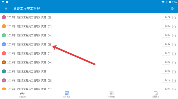 1、在历年真题页面中,点击想要查看的真题试卷进入模拟。
