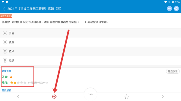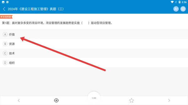 2、进入真题试卷后,可以开始模拟练习,通过点击按钮选择答案。