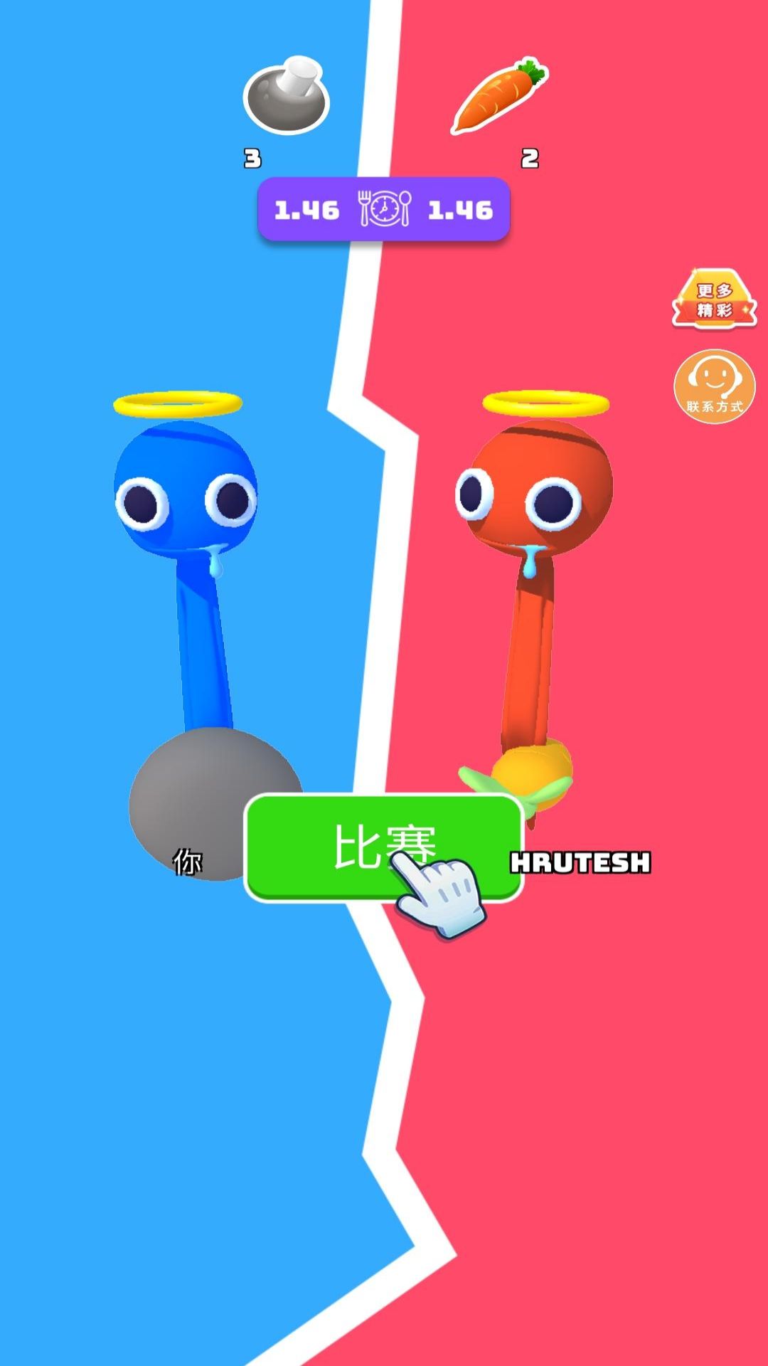 3、欢乐互动体验:支持与好友互动比拼食量,分享美食收获,增添游戏社交乐趣与互动性。