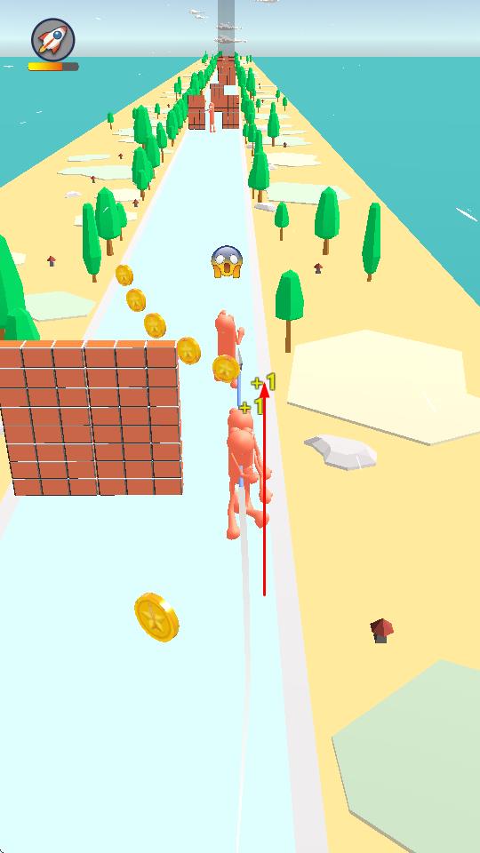 2、灵活躲避障碍:前方遇到障碍时,玩家需灵活躲避,那些砖块会阻拦前进的步伐,需小心应对。