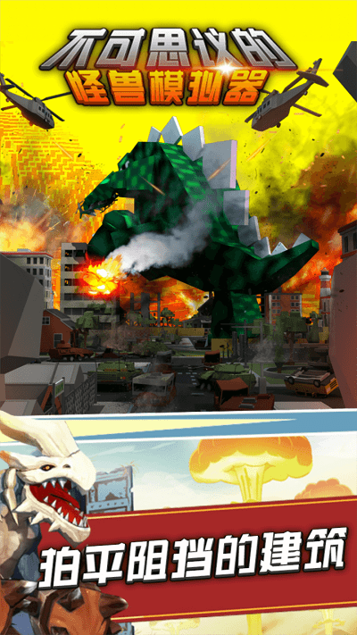 不可思议的怪兽模拟器你可以操控拥有喷火、电击、巨力等特殊能力的怪兽,穿梭于摩天大楼之间,肆意摧毁钢铁桥梁,掀翻川流不息的车辆,感受建筑在脚下轰然倒塌的快感逼真的3D城市环境与震撼的特效音效相结合,每一次攻击都充满力量感,让你尽情释放破坏欲,体验主宰城市、碾压一切的刺激,在混乱与毁灭中书写属于怪兽的传奇。