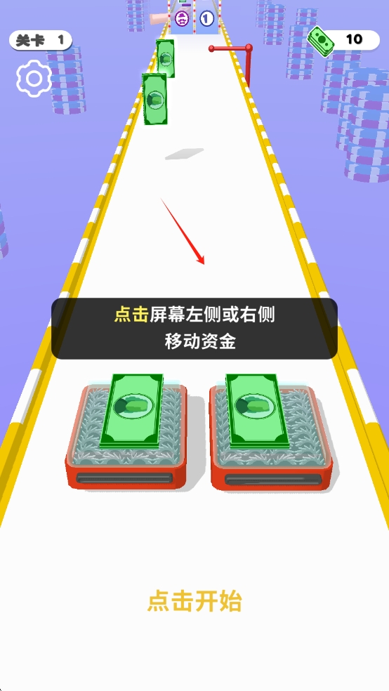 1、根据游戏提示,点击屏幕左侧或者右侧,可以移动上面的资金,点击一次移动一部分。