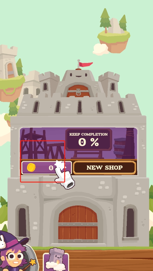 3、在城堡界面,关注KEEPCOMPLETION进度,点击相关按钮积累金币,推进游戏经营进程。