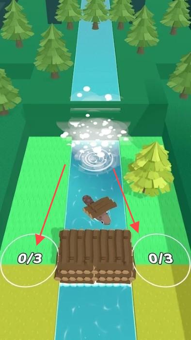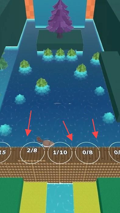 1、玩家操控海狸角色,在河流场景中移动,收集木材等资源。