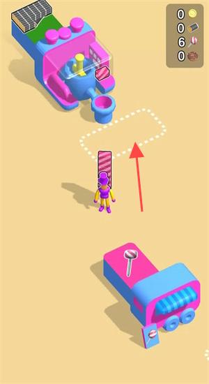 3、在“我的糖果工厂游戏”类似场景中,依据箭头指示等元素,引导角色沿路径行动,与场景中的设施(如糖果制作相关装置)互动,按照游戏设定的规则进行操作。