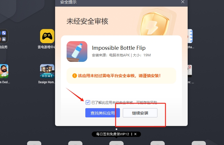3、将不可能的瓶子空翻apk拖入到雷电模拟器,点击已了解此应用,再点击继续游戏即可进入游玩。