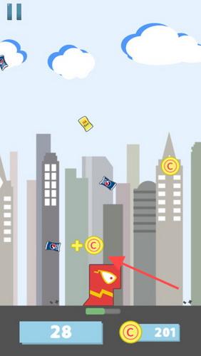 1、进入游戏界面后,操控角色在城市背景中收集金币等道具,留意下方数字变化(如28、201),这是积累资源的关键操作,确保游戏进程顺利推进。