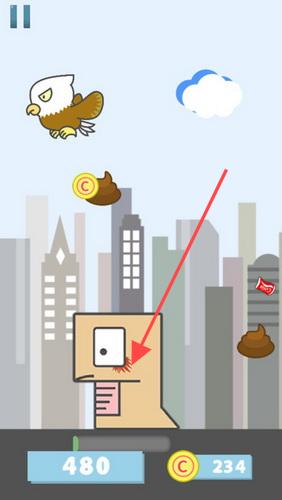 3、在游戏进行中,继续在城市背景收集资源,面对新元素(如老鹰、特殊道具),调整操作策略,关注下方数字(如480、234),合理规划收集路径,提升游戏体验。