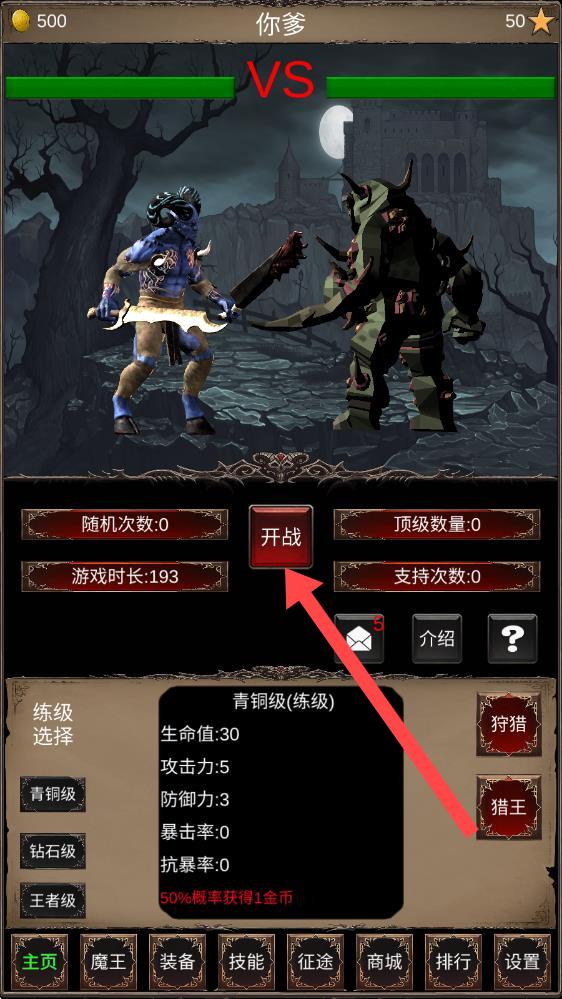 1、武器选择战斗:从众多武器中挑选趁手装备,在挑战野怪与魔王对战时,发挥武器优势,赢取胜利。